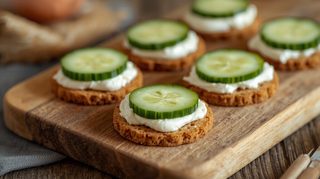 Vollkorn-Cracker mit Frischkäse & Gurke